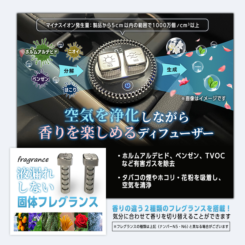 ◎空気清浄機能付きなので、車内の空気質を良好に保てます!コンパクトながら大きな清浄効果を発揮し、さらにダブルフレグランスで車内の異臭を簡単に解決します!