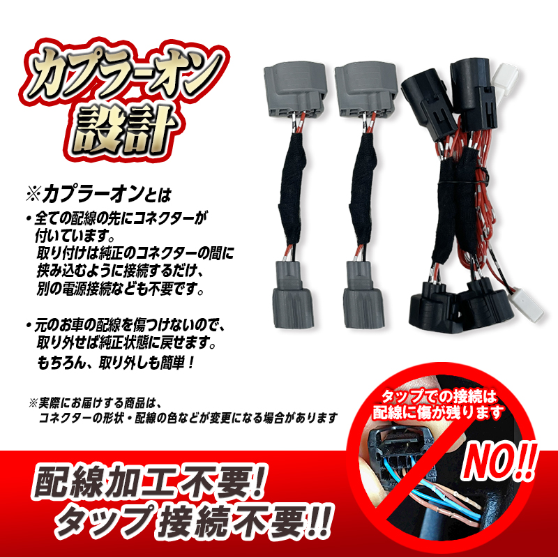製品はカプラーオン設計で、純正配線に割り込ませるだけなので簡単に取り付け・取り外しが可能です。