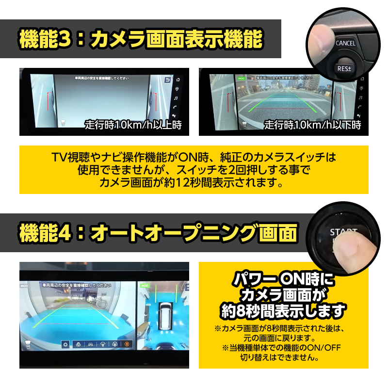 パワーON時(ナビ起動後)にカメラ画面が自動表示!安全確認後に発進!