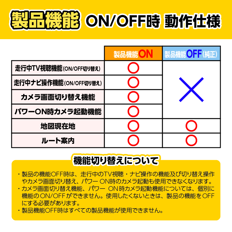 - 動作確認の上、販売を行っておりますが、一部車種やグレード、お取り付けの社外品との干渉などにより、予期しないトラブルが発生する可能性がございます。したがって、一部で弊社が把握できず正常に動作しない可能性がございます。 万が一このような状態が生じたときは、お客様のお車のグレード、仕様、オプションの設置状態などや使用状況を確認の上 対応させて頂きます。ただし、すべてのケースにおいて動作不良が改善されない場合があることをご了解ください。