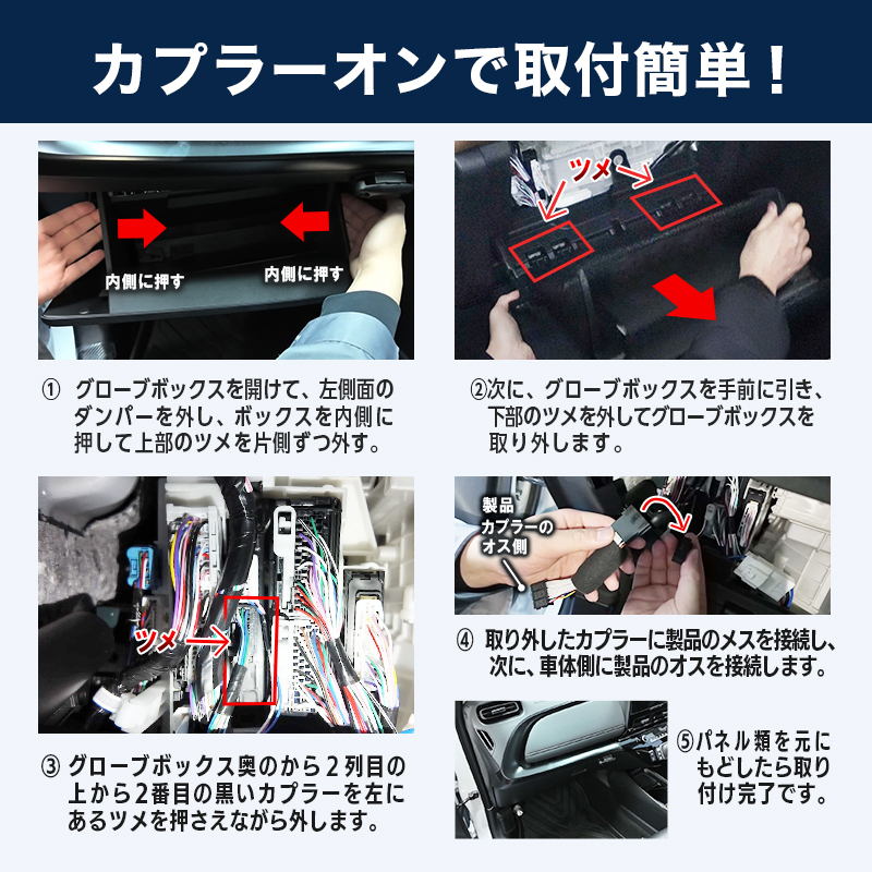 - 動作確認の上、販売を行っておりますが、一部車種やグレード、お取り付けの社外品との干渉などにより、予期しないトラブルが発生する可能性がございます。したがって、一部で弊社が把握できず正常に動作しない可能性がございます。 万が一このような状態が生じたときは、お客様のお車のグレード、仕様、オプションの設置状態などや使用状況を確認の上 対応させて頂きます。ただし、すべてのケースにおいて動作不良が改善されない場合があることをご了解ください。