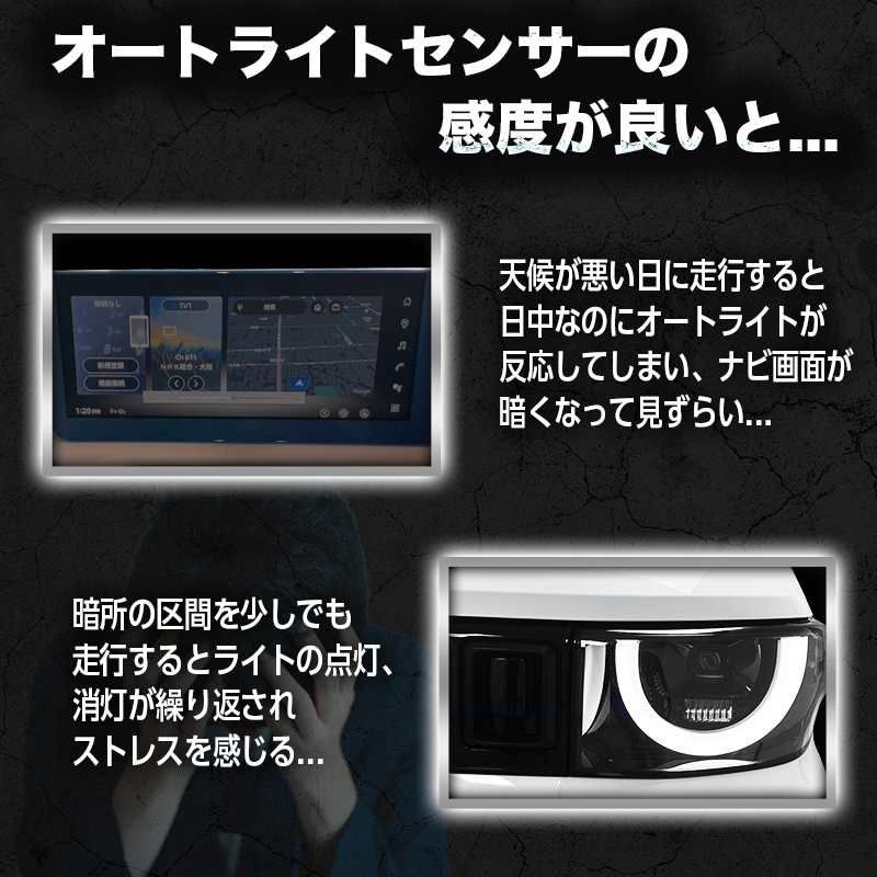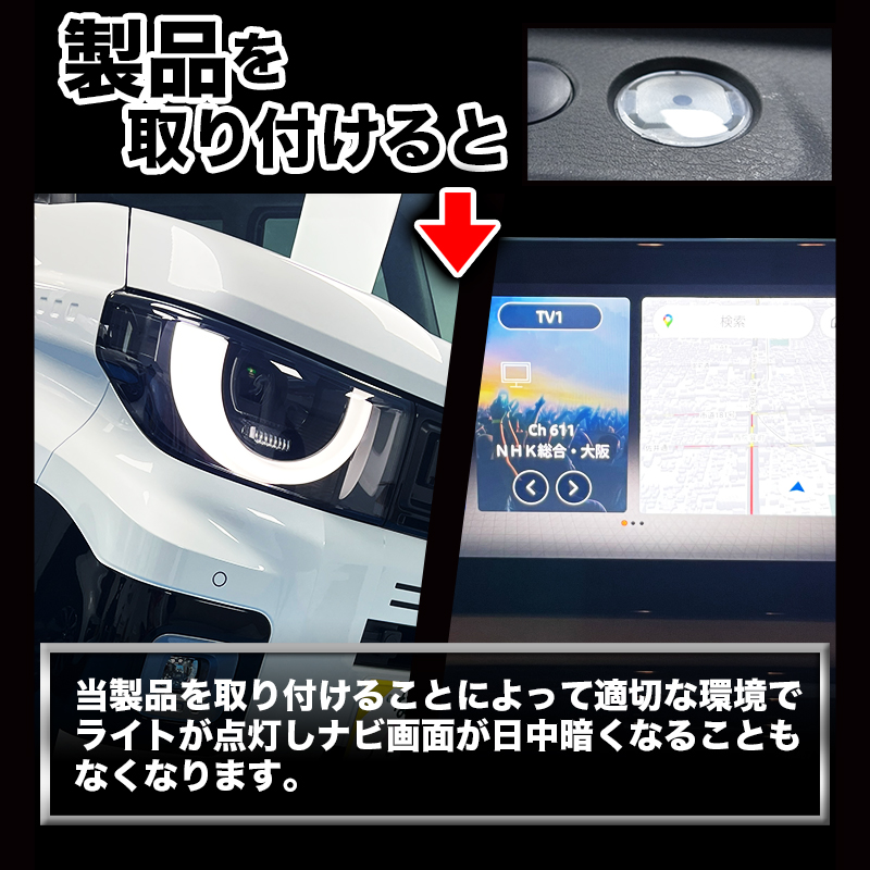 当製品を取り付けることで適切な環境でライトが点灯し、日中ナビ画面が暗くなることもなくなります!