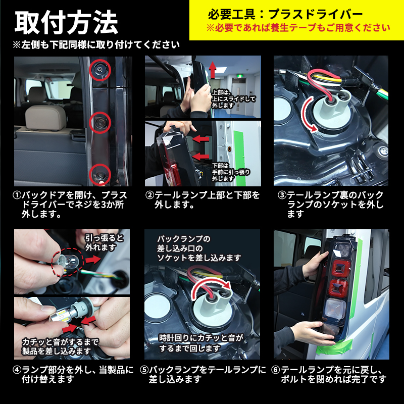 純正バルブを外して製品のLEDバルブを差し込むだけの簡単取付!