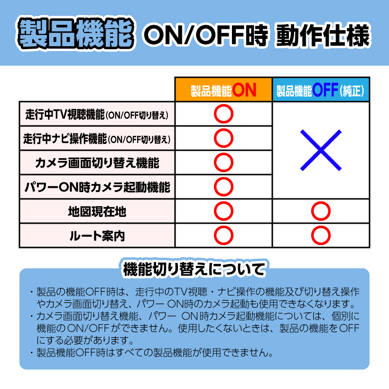 ・当製品はHDMI動画視聴・TV視聴・ナビ操作の機能自体を追加するものではございません。