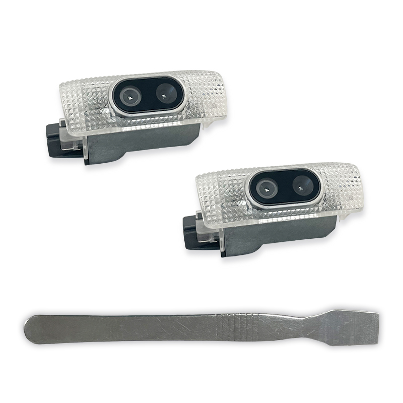 ロゴで魅せて、赤色警告灯で守る。足元を上質に演出しながら、夜間の安全性も高める多機能カーテシランプです。