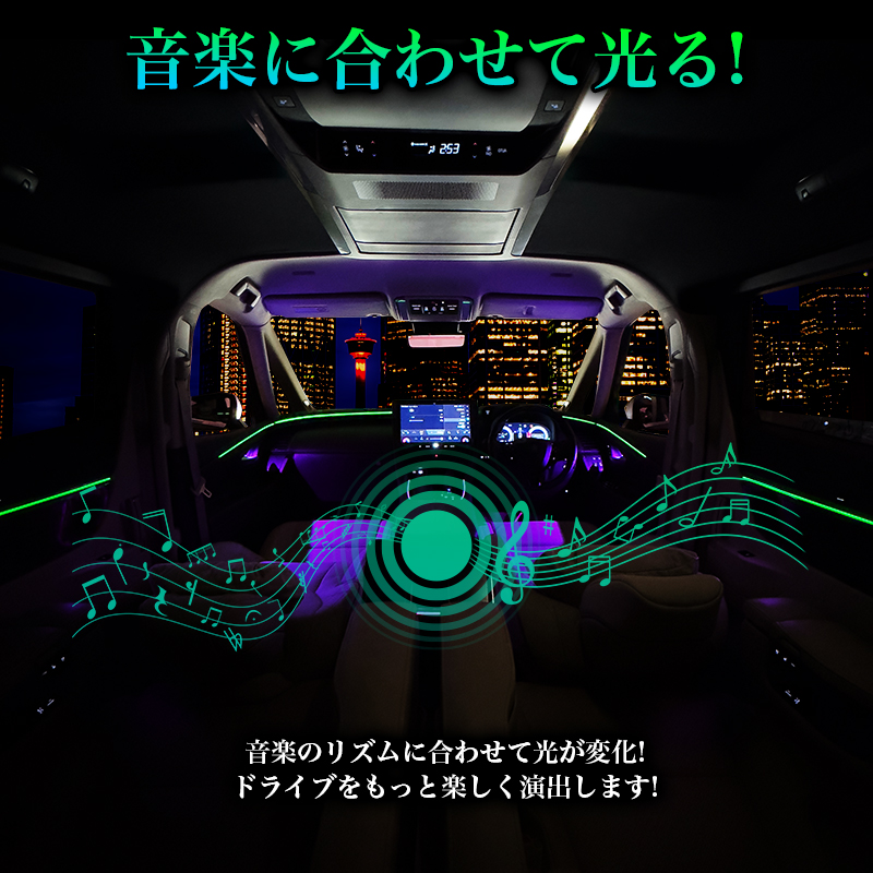 車種専用設計で自然にフィットし、無段階の調光・調色と音楽連動、スマホ操作で車内を上質にアップグレードするアンビエントライトです。