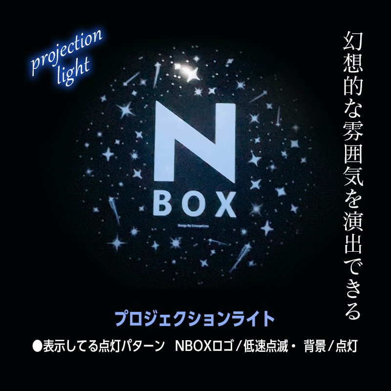 暗い場所でも作業がしやすく、ロゴの投影で愛車の個性を演出。さらに、N-BOXロゴ入りの赤色警告ライトの点滅で後続車への注意喚起も。