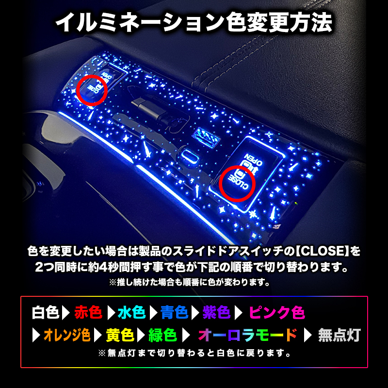 TOYOTA アルファード ヴェルファイア 40系 専用 スライドドア&USB増設 センターコンソールユニットType-C対応/イルミネーション付き 9色切替可能 + オーロラモード搭載