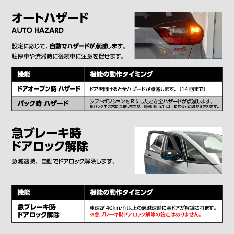 HONDA フィット(R7年7月~)GR/GS型対応車速連動オートドアロック&ドアロック連動オートパワーウインドウ&ハザードシステム/エンジンかけたままドアロック/7大機能搭載