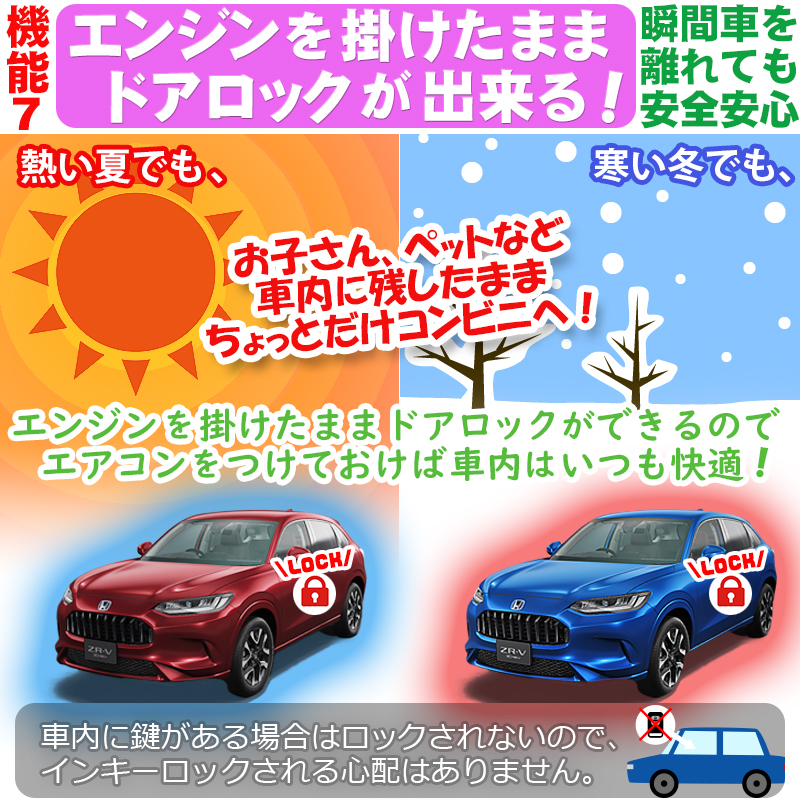 HONDA ZR-V 車速連動オートドアロック+オートドアロック解除+ロック連動オートパワーウィンドウ+緊急時ドアオープン+ドアオープン連動オートハザード+バック連動オートハザード+エンジン掛けたままドアロック機能付き