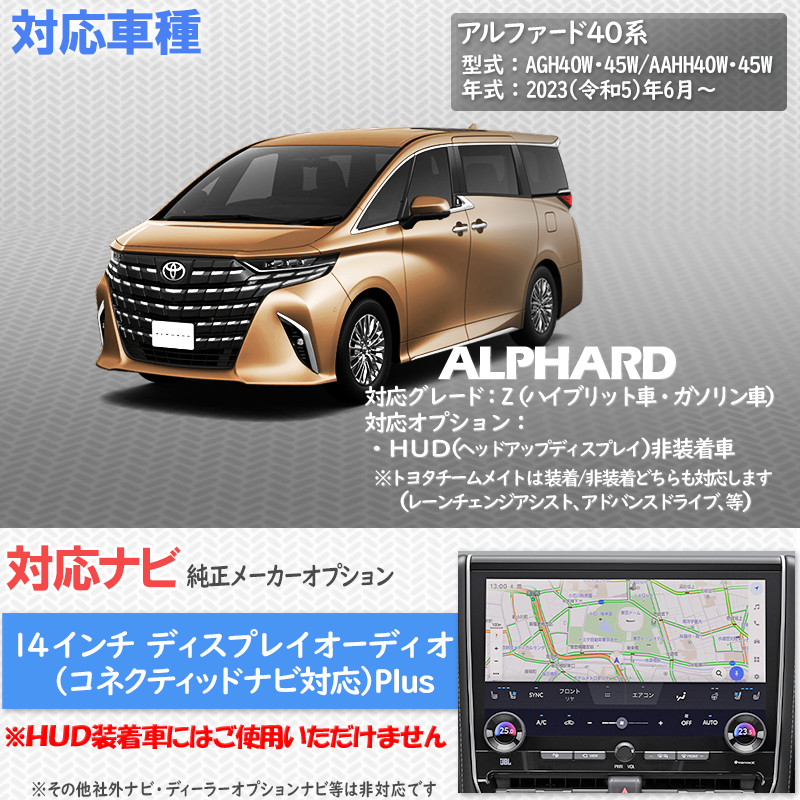 【OBD車検&LCAエラー対応 後付けスイッチ無し!】トヨタ アルファード 40系 「HUD非搭載車」対応 ディスプレイオーディオ(コネクティッドナビ対応)Plus 対応 TV&ナビキャンセラー エラー対策版 Ver.3.0