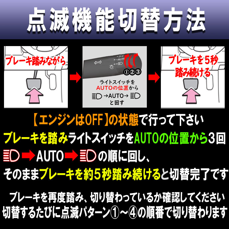 リフレクターは4種類の点滅パターンに切り替えが可能!