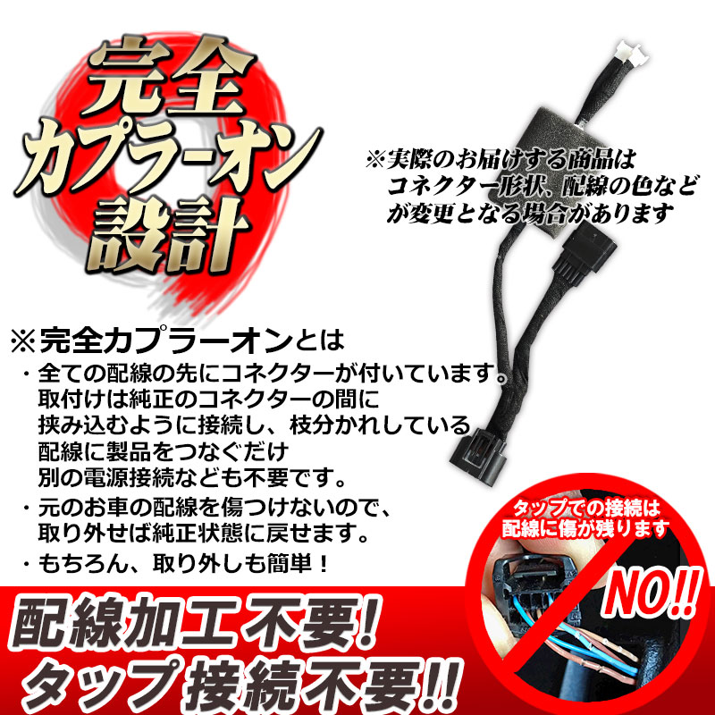 〇全ての配線にカプラーが付いているので、配線の切断などの余計な手間がなく、お車の配線を傷つけたりする心配はありません!!