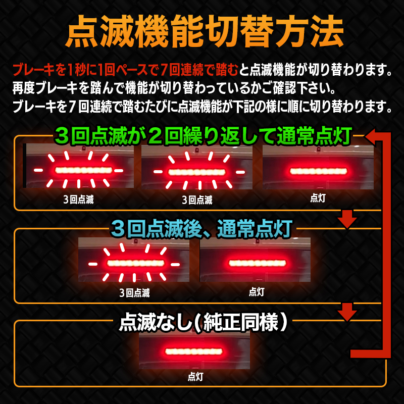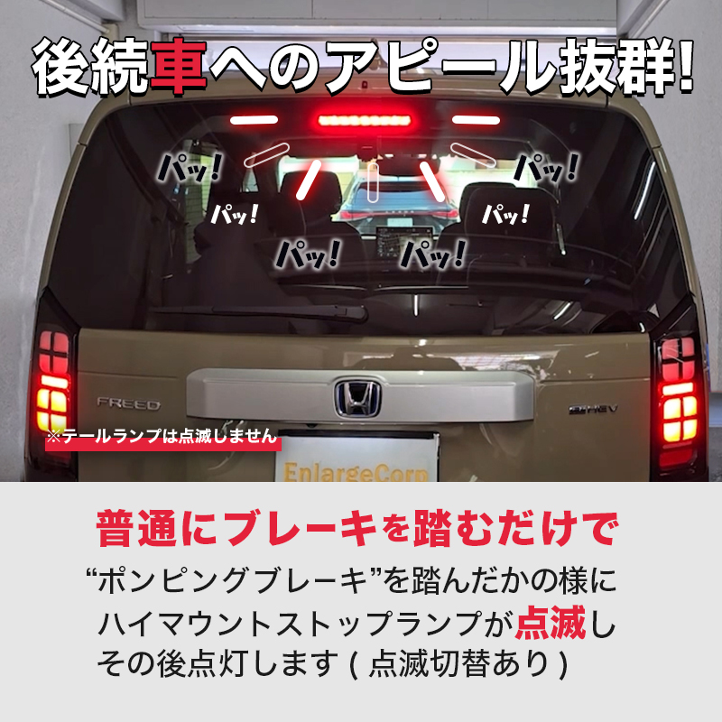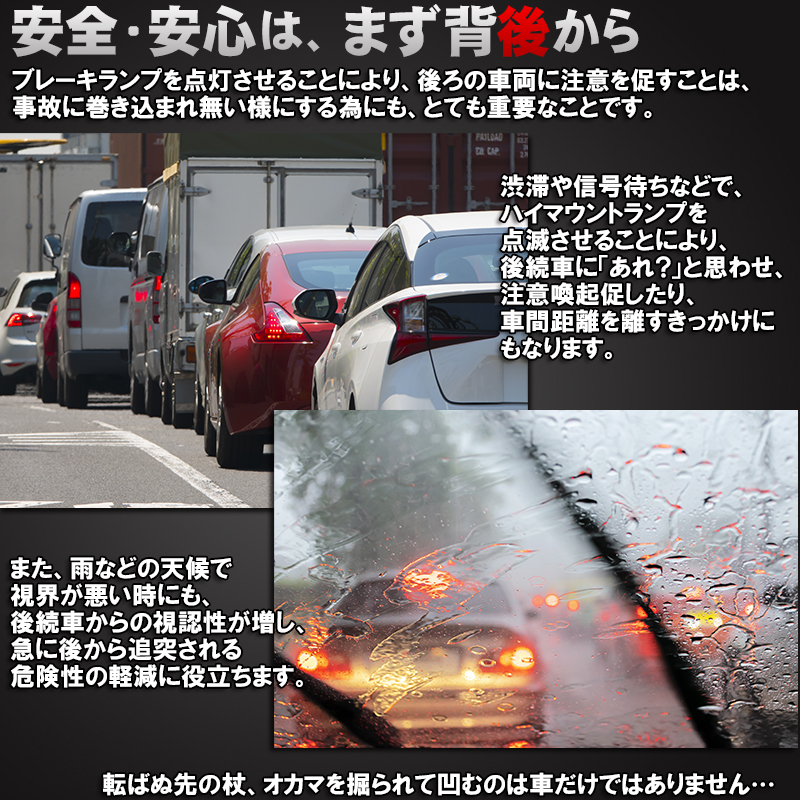 ポイント 製品を取り付けると、ブレーキに連動しハイマウントストップランプが自動点滅します。