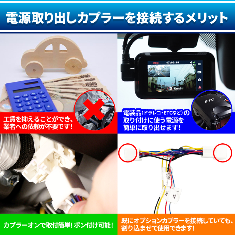 トヨタ系 電源取り出しオプションカプラー 分岐型 I字タップ付属