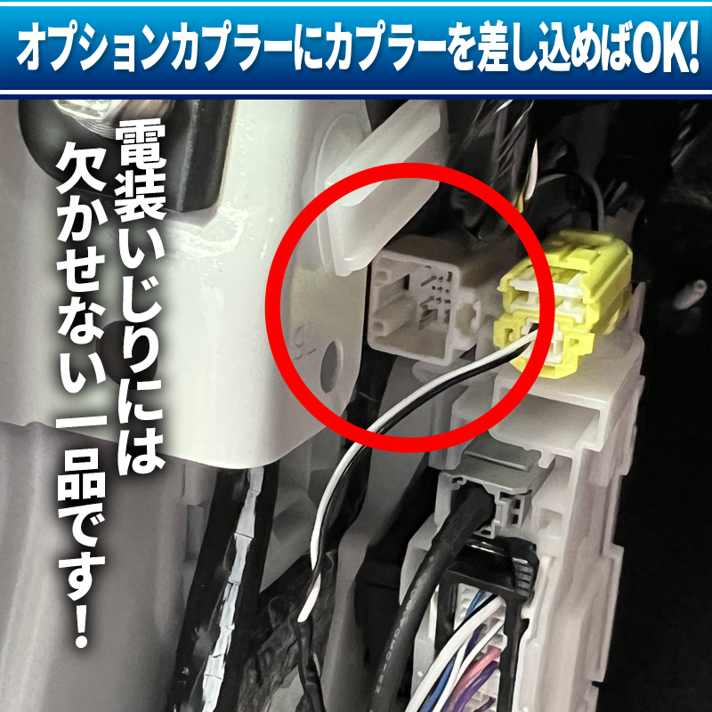 ◎オプションカプラーを挿すだけで5種の電源+アースが取り出し可能になる万能カプラーで取り付けは簡単!お車のオプションカプラーに差し込むだけ!
