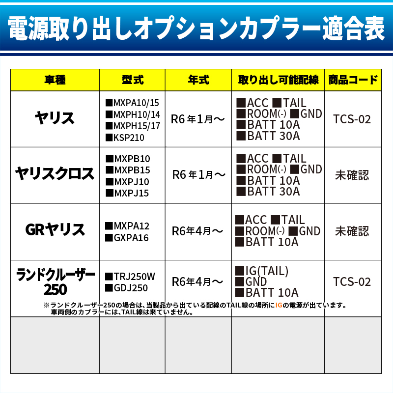 トヨタ系 電源取り出しオプションカプラー 分岐型 I字タップ付属 ヤリス ランドクルーザー250など(TCS-02)