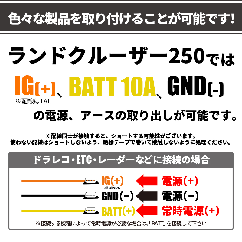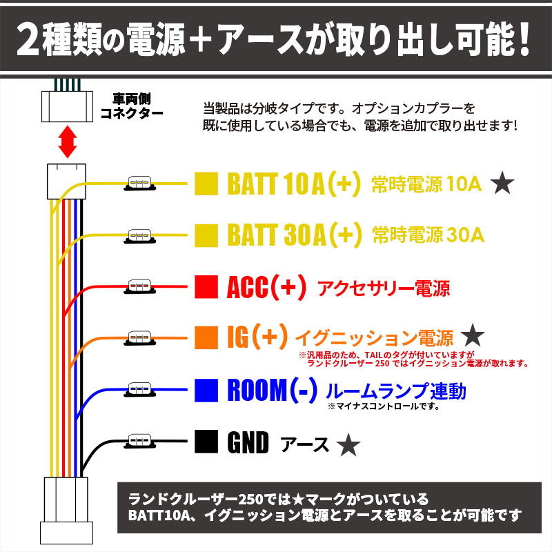 トヨタ ランドクルーザー250 電源取り出しオプションカプラー 分岐型 I字タップ付属 (TCS-02)