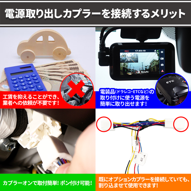 トヨタ ランドクルーザー250 電源取り出しオプションカプラー 分岐型 I字タップ付属 (TCS-02) ドラレコ ETC