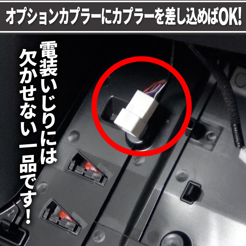 お車のオプションカプラーに製品のコネクターを差し込むことで、元の機器を使用しながら追加で電源を取り出せます!