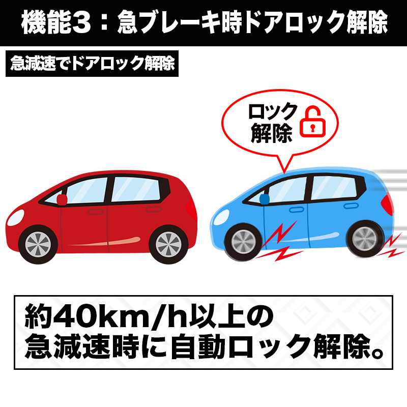 ※正常に動作するための減速の所要時間は車種によって異なります。 急ブレーキ時でも動作しない場合があること予めご了承下さい。