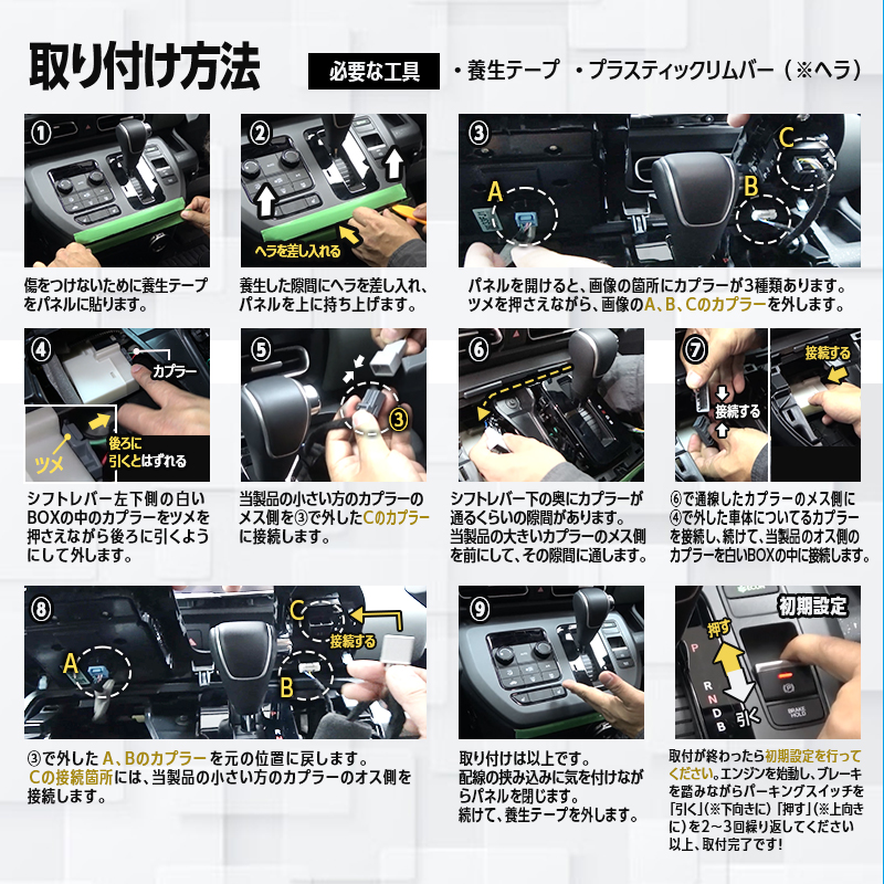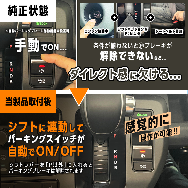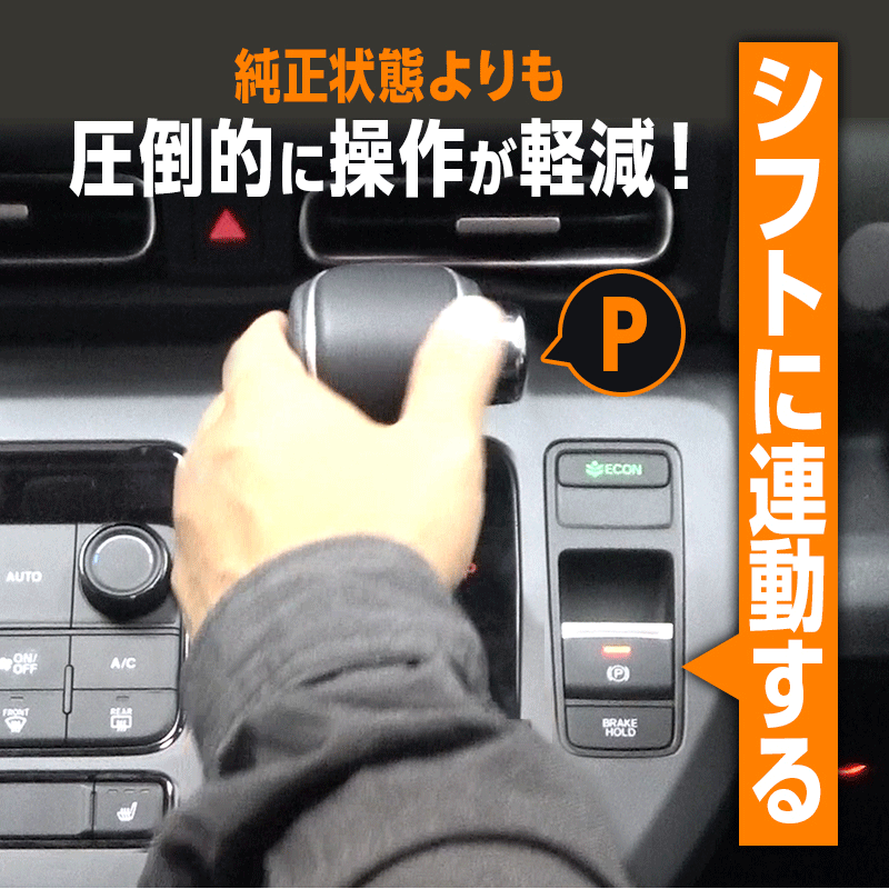 パーキングブレーキのONおよび解除がシフトに連動します!純正状態よりも操作が軽減され大変楽になります!