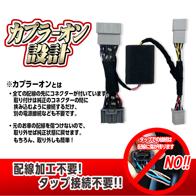 - 動作確認の上、販売を行っておりますが、一部車種やグレード、お取り付けの社外品との干渉などにより、予期しないトラブルが発生する可能性がございます。したがって、一部で弊社が把握できず正常に動作しない可能性がございます。 万が一このような状態が生じたときは、お客様のお車のグレード、仕様、オプションの設置状態などや使用状況を確認の上 対応させて頂きます。ただし、すべてのケースにおいて動作不良が改善されない場合があることをご了解ください。