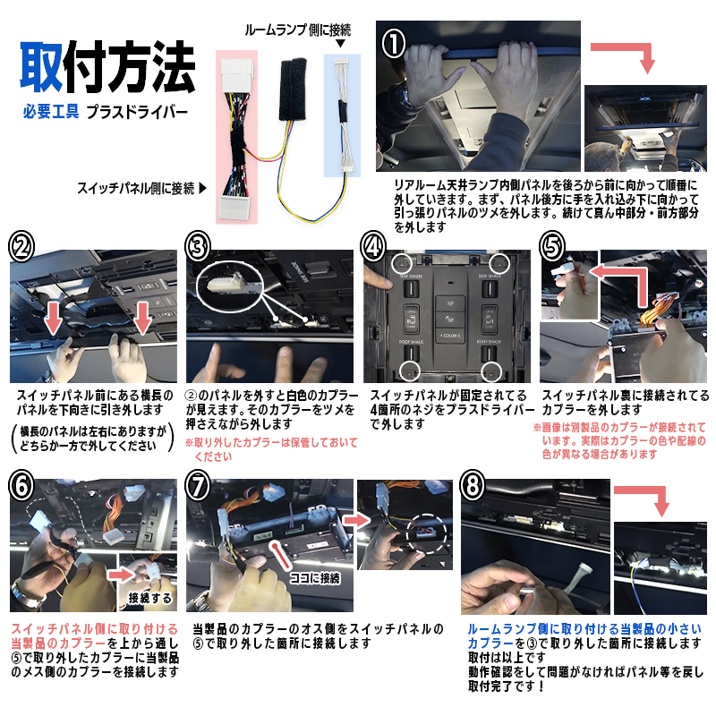 トヨタ アルファード/ヴェルファイア 40系 リアルームランプ連動 スライドドアスイッチイルミ 点灯キット カプラーオンで取り付け簡単!
