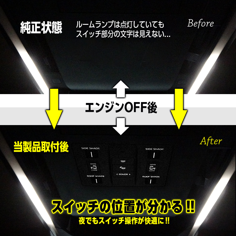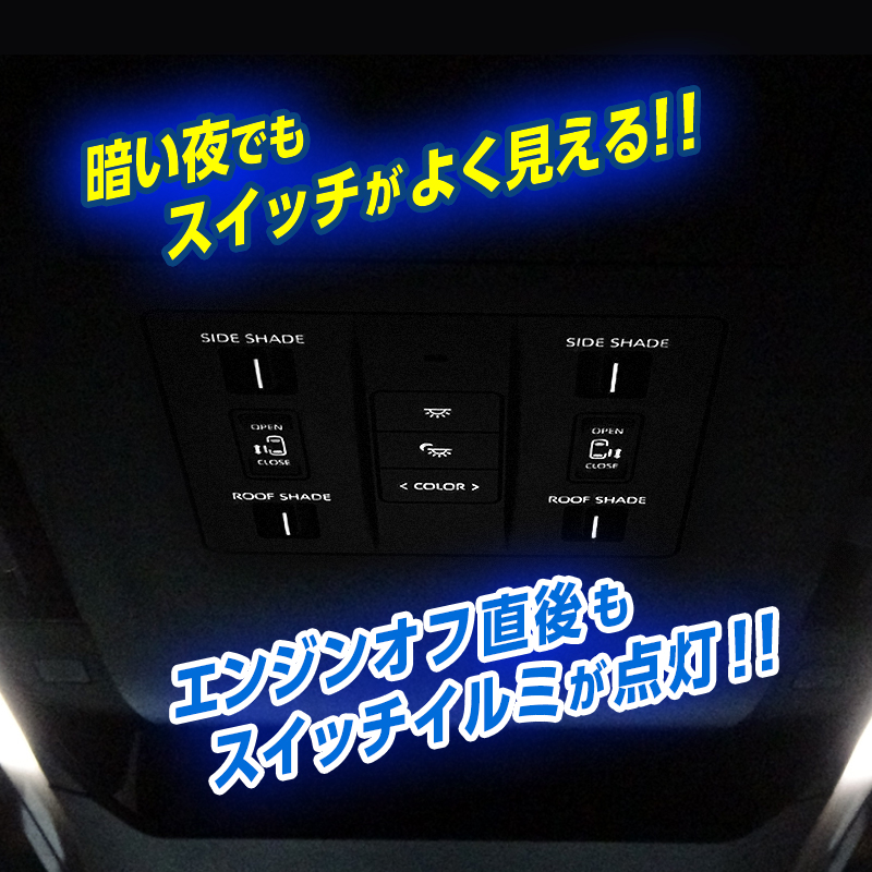 トヨタ アルファード / ヴェルファイア 40系 リアルームランプ連動 スライドドア スイッチイルミ 点灯キット エンジンOFFでも点灯!