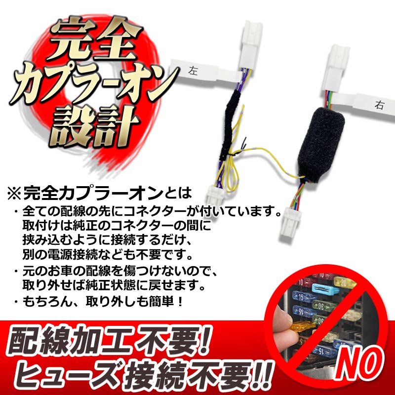 - 動作確認の上、販売を行っておりますが、一部車種やグレード、お取り付けの社外品との干渉などにより、予期しないトラブルが発生する可能性がございます。したがって、一部で弊社が把握できず正常に動作しない可能性がございます。 万が一このような状態が生じたときは、お客様のお車のグレード、仕様、オプションの設置状態などや使用状況を確認の上 対応させて頂きます。ただし、すべてのケースにおいて動作不良が改善されない場合があることをご了解ください。